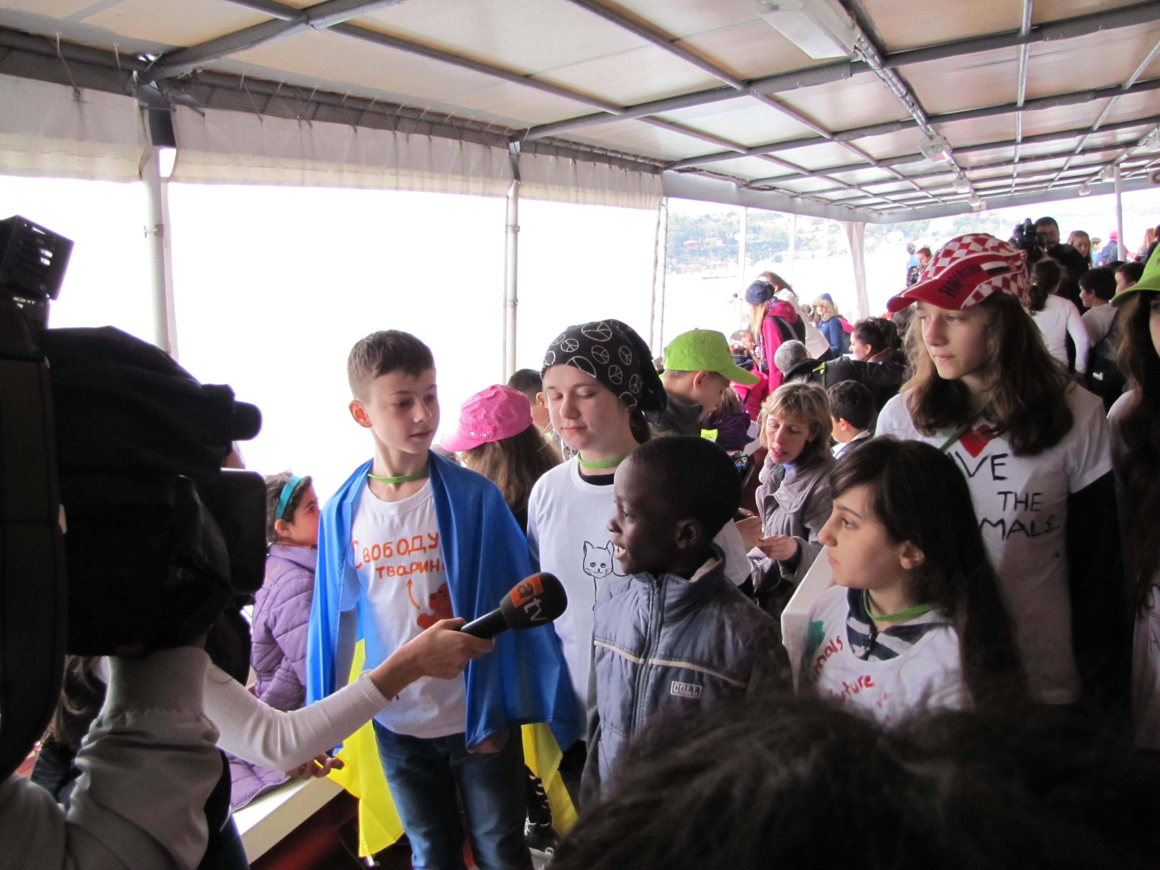 На двох кораблях одна тисяча учасників турецьких школярів та гостей більше ніж з 20 країн, серед яких була і делегація нашої гімназії, здійснила тур по Босфору, тим самим висловивши своє бажання бути одними з тих, кому не байдуже майбутнє нашої планети та братів наших менших. Всі учасники були вдягнені у футболки, які розфарбуваливласноруч та написали свої слогани на захист тварин.